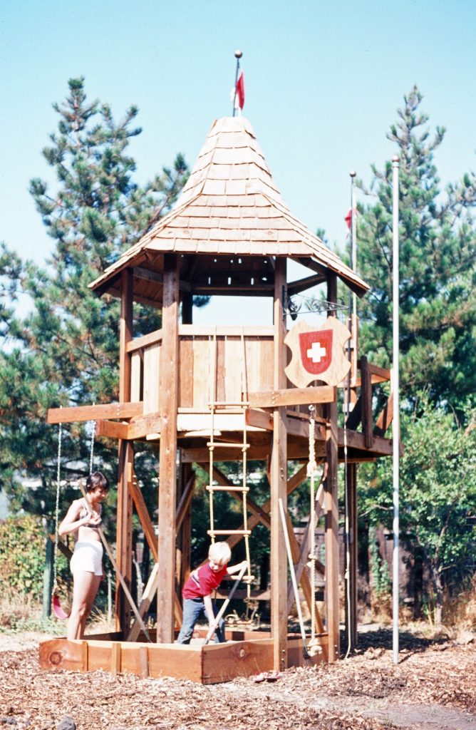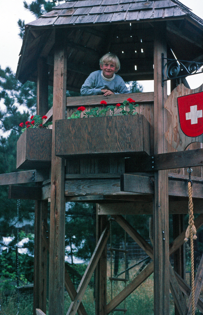 The European-inspired “Climbing Tower” we built in the backyard was the envy of the kids in the neighborhood. It had a shingled roof, ropes to climb, a fire pole to slide down, a sand box and planters full of Geraniums.
