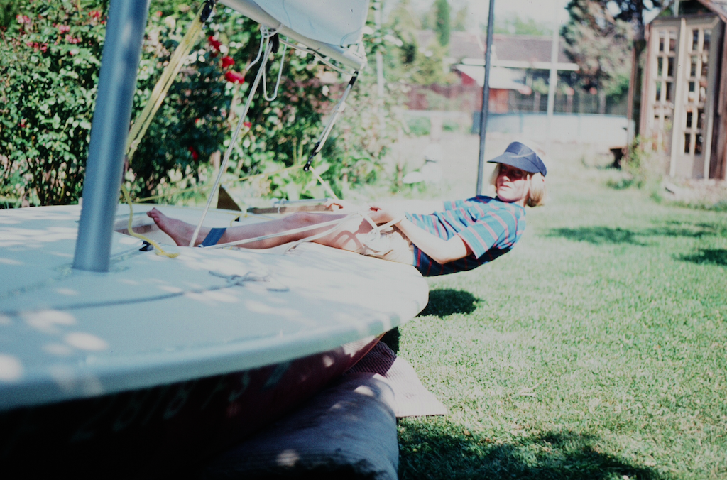 We practiced rigging the boat in the backyard and after much trepidation (his), excitement and impatience (mine), we set out on our first marine adventure to Lafayette reservoir with the 13 foot Laser tied to the roof of the car. I know Don was convinced we would sail away from the dock and not have the skills to return. Somehow we made it back. Our sailing careers were launched.